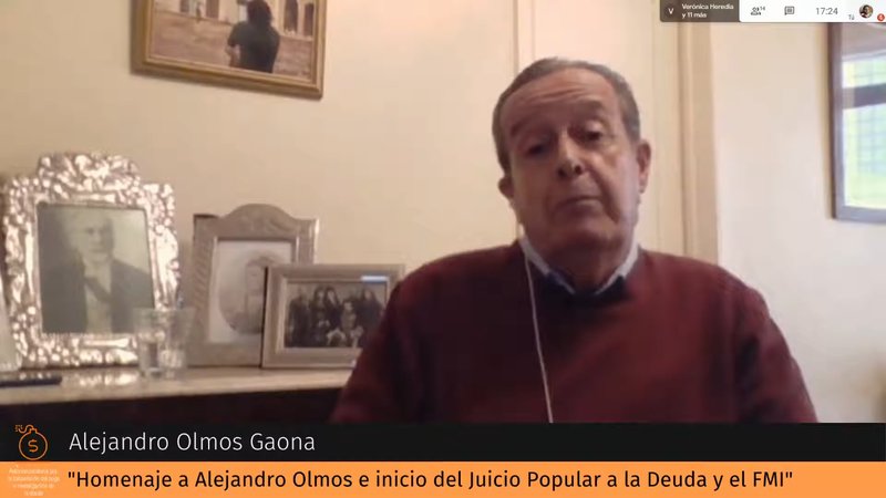 “Es un honor hoy estar un homenaje a don Alejandro Olmos. Lo recuerdo bien, con mucho cariño. Además, en mi cátedra ‘poder económico y derechos humanos’, hace muchos años, terminamos entre todos los oradores que tuvimos, panelistas, el recuerdo de Alejandro quedó muy grabado y ya en ese entonces nos contó ese proceso de la deuda de esos momentos. El había nacido en el año 24, en Tucumán, y evidentemente fue muy activo, muy estudioso, y a medida que pasó el tiempo fue creciendo con una preocupación, que era la deuda que tenía la Argentina”.